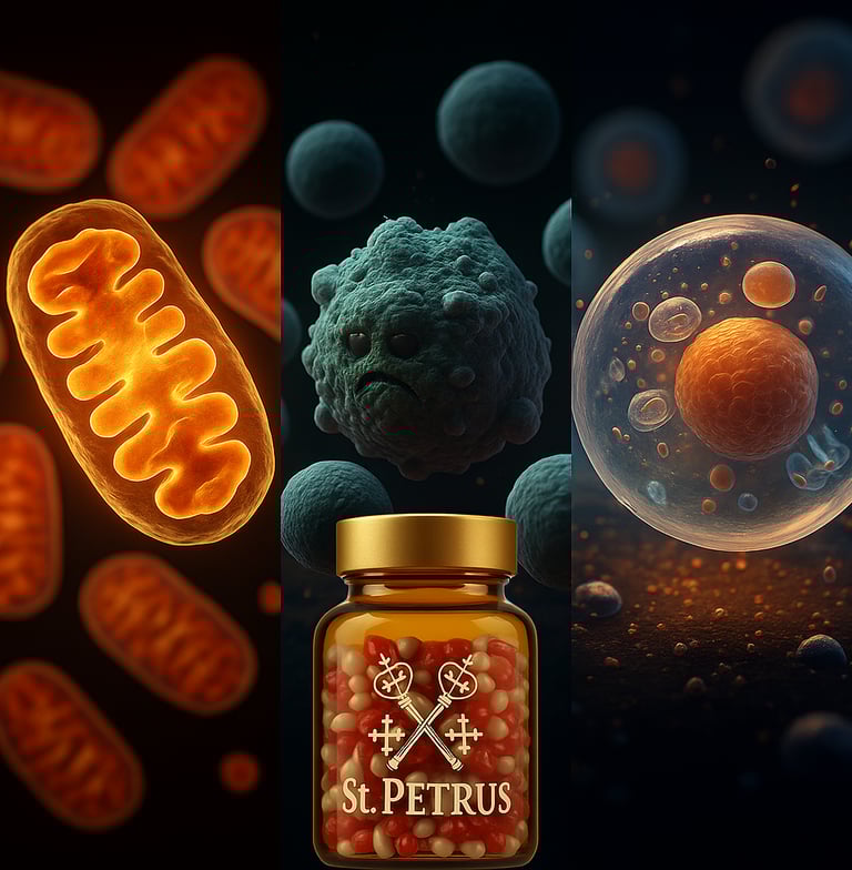Mientras otros suplementos solo maquillan los síntomas del envejecimiento, St. Petrus Longevity™ actúa donde todo comienza: en tus células.